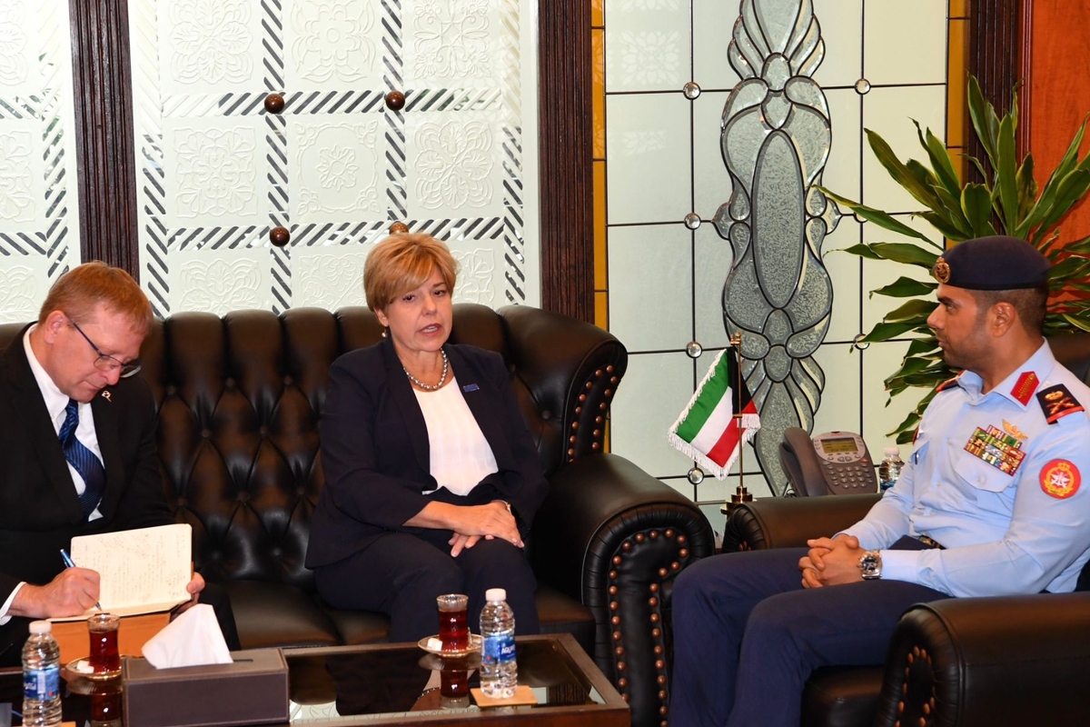 بحث نائب رئيس الأركان العامة للجيش اللواء الركن طيار صباح جابر الأحمد الصباح مع نائبة رئيس النمو العالمي للدفاع في شركة «بوينغ» للدفاع والفضاء والأمن هايدي غرانت التعاون في مجال الصناعات الجوية العسكرية والدفاعية.