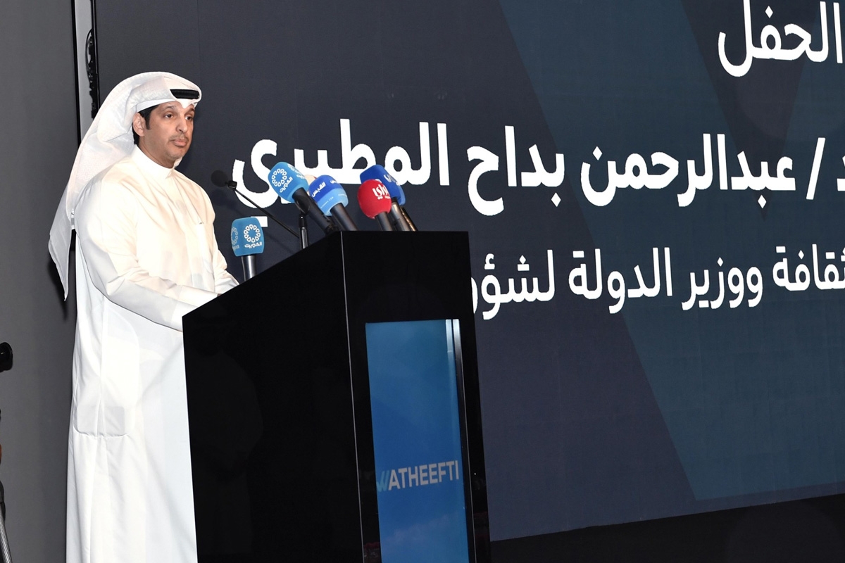 أكد وزير الإعلام والثقافة ووزير الدولة لشؤون الشباب عبدالرحمن المطيري أن معرض (وظيفتي) يشكل منصة وطنية تجمع بين مؤسسات الدولة والقطاع الخاص لتوسيع مجالات التدريب والتوظيف وصناعة الفرص الجديدة بما يعزز ثقافة العمل المنتج.