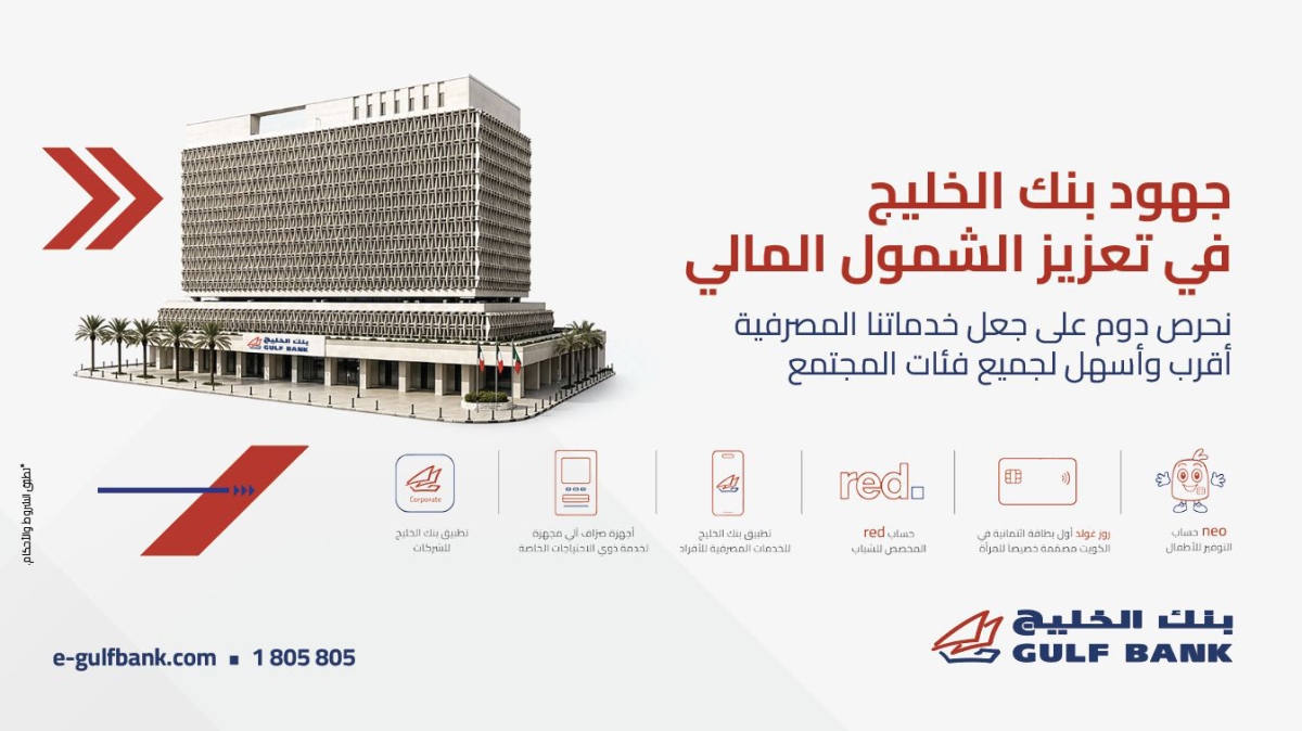 بمناسبة اليوم العربي للشمول المالي، أصدر بنك الخليج تقريراً خاصاً استعرض فيه دوره الرائد في دعم جهود الدولة لتعزيز الشمول المالي، وتمكين مختلف شرائح المجتمع من الوصول العادل والآمن إلى الخدمات المالية، بما ينسجم مع توجهات بنك الكويت المركزي، وأفضل الممارسات المصرفية المستدامة.